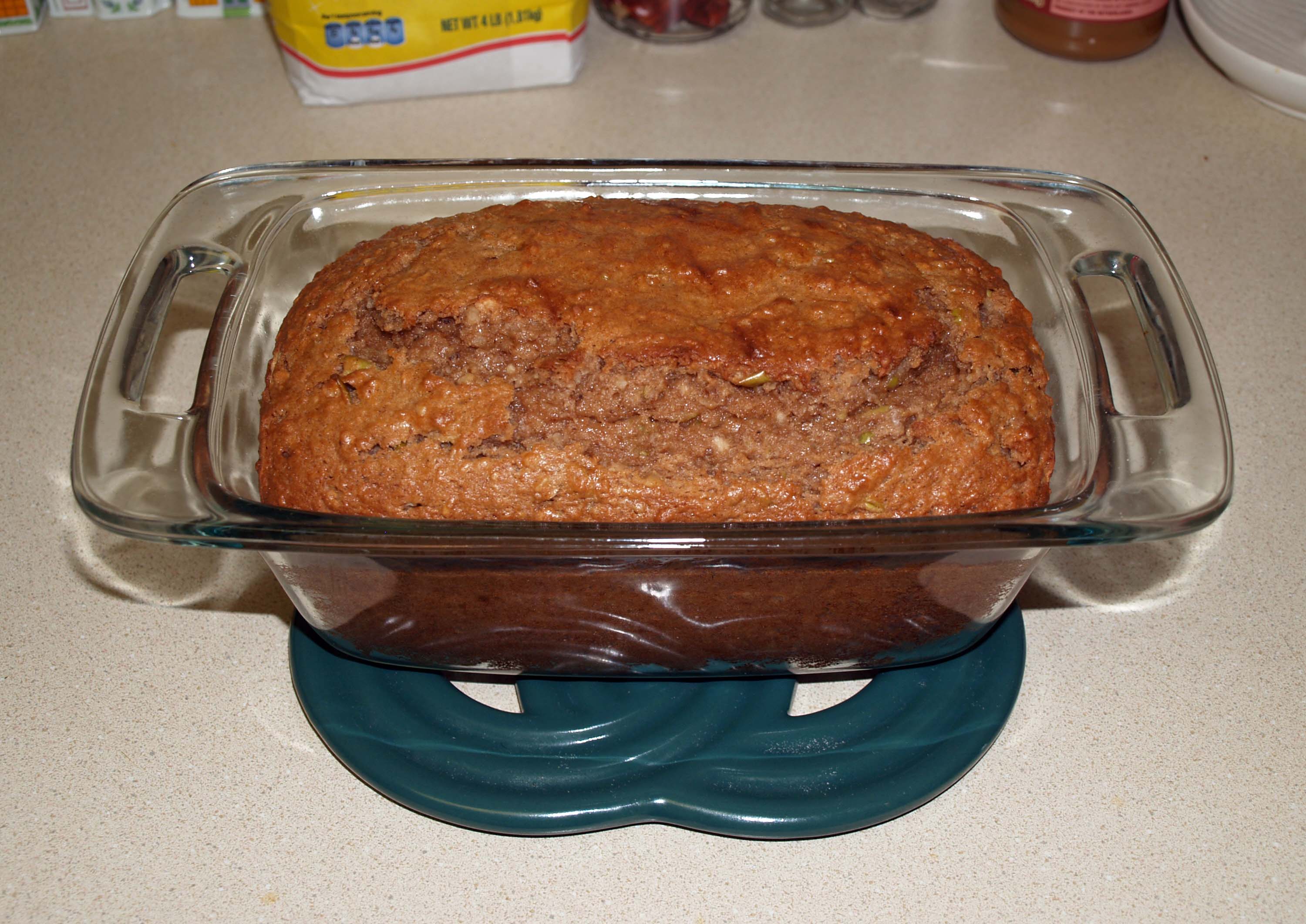 Pour the batter into the prepared loaf pan. Bake for 55-60 minutes, or until a toothpick inserted into the bread comes out clean. I suggest you test a few different areas of the bread, as it can cook unevenly, leaving you with some parts that are nicely cooked, and some that are completely raw.