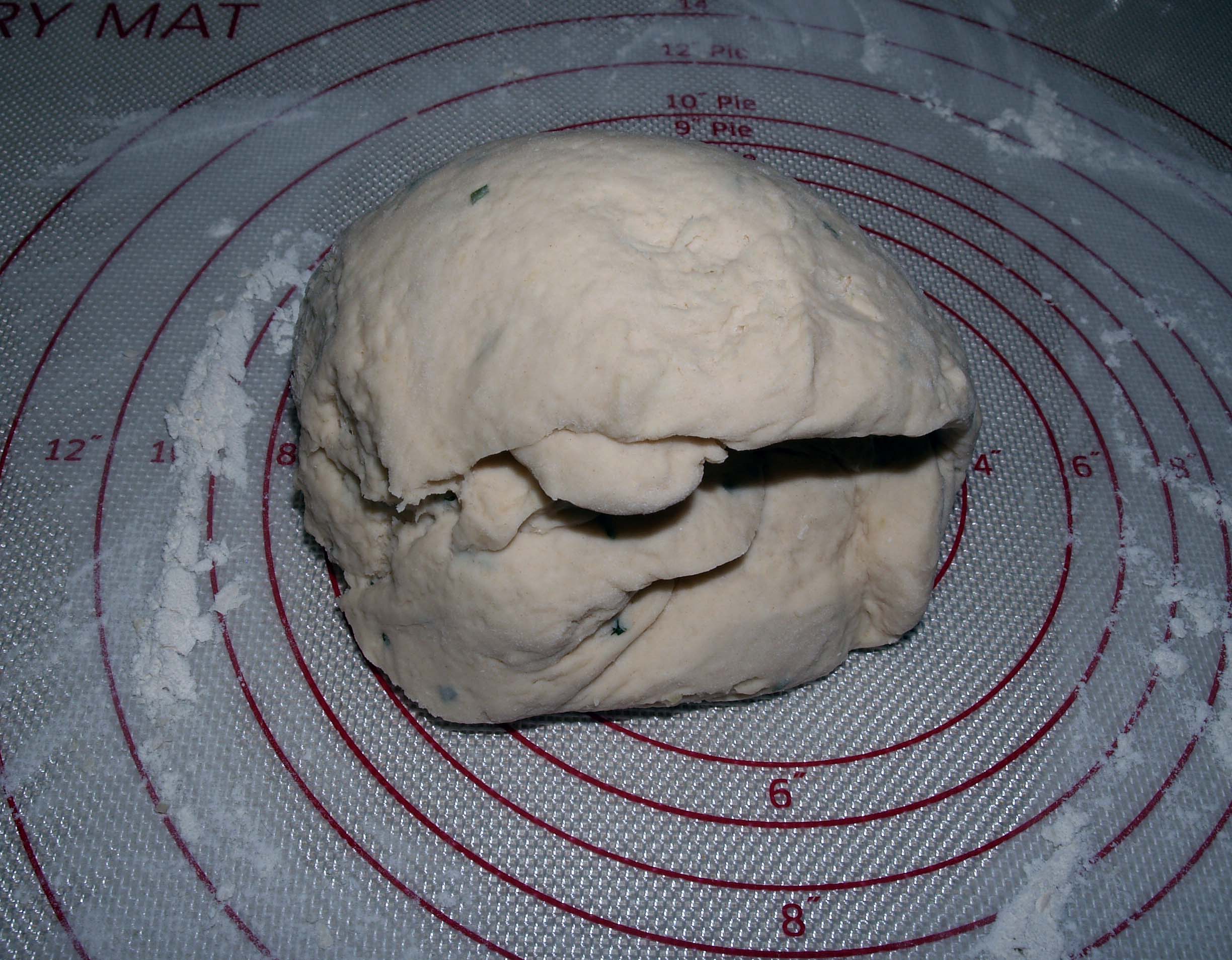 Knead your dough on a well-floured surface until it is smooth and elastic, approximately 5-8 minutes. Make sure you are using enough flour so that the dough doesn’t stick. A silicone pastry mat is really helpful here (a stand mixer is even more helpful, but sometimes it’s nice to just knead bread).