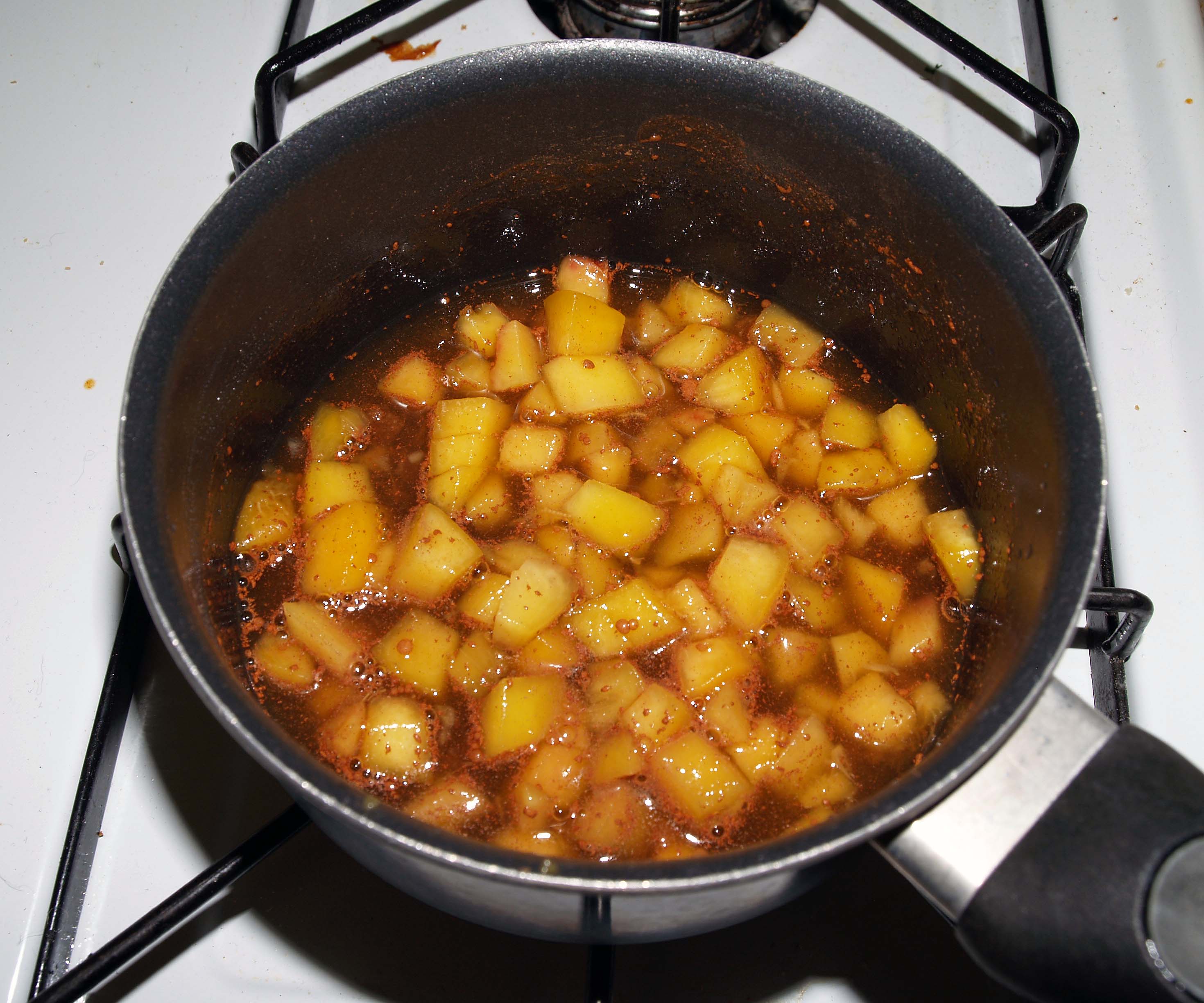 Bring the mixture to a boil over medium-high heat, stirring occasionally, then reduce the heat to maintain a simmer. Simmer the peaches until the liquid begins to reduce and thicken, stirring when you remember. This should take 10-15 minutes. When the peaches have reached the desired consistency, remove them from the heat and let them cool completely.