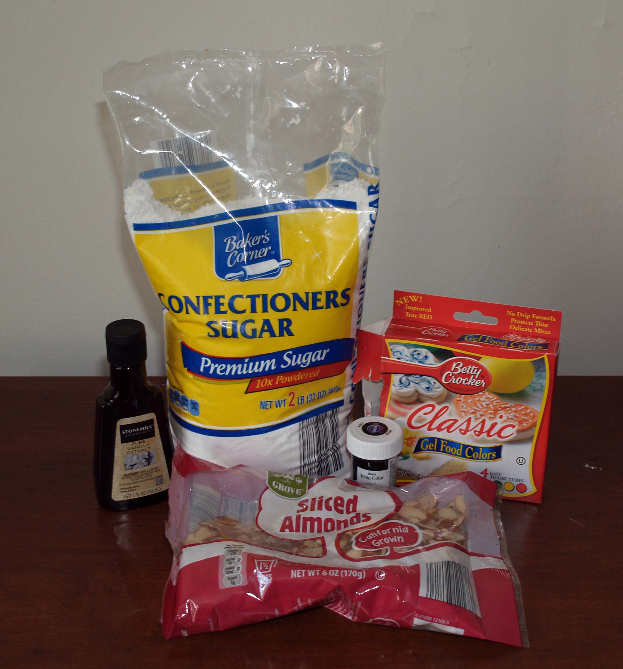 - enough milk to make your icing piping consistency and flooding consistency, approximately 2 Tbsp.