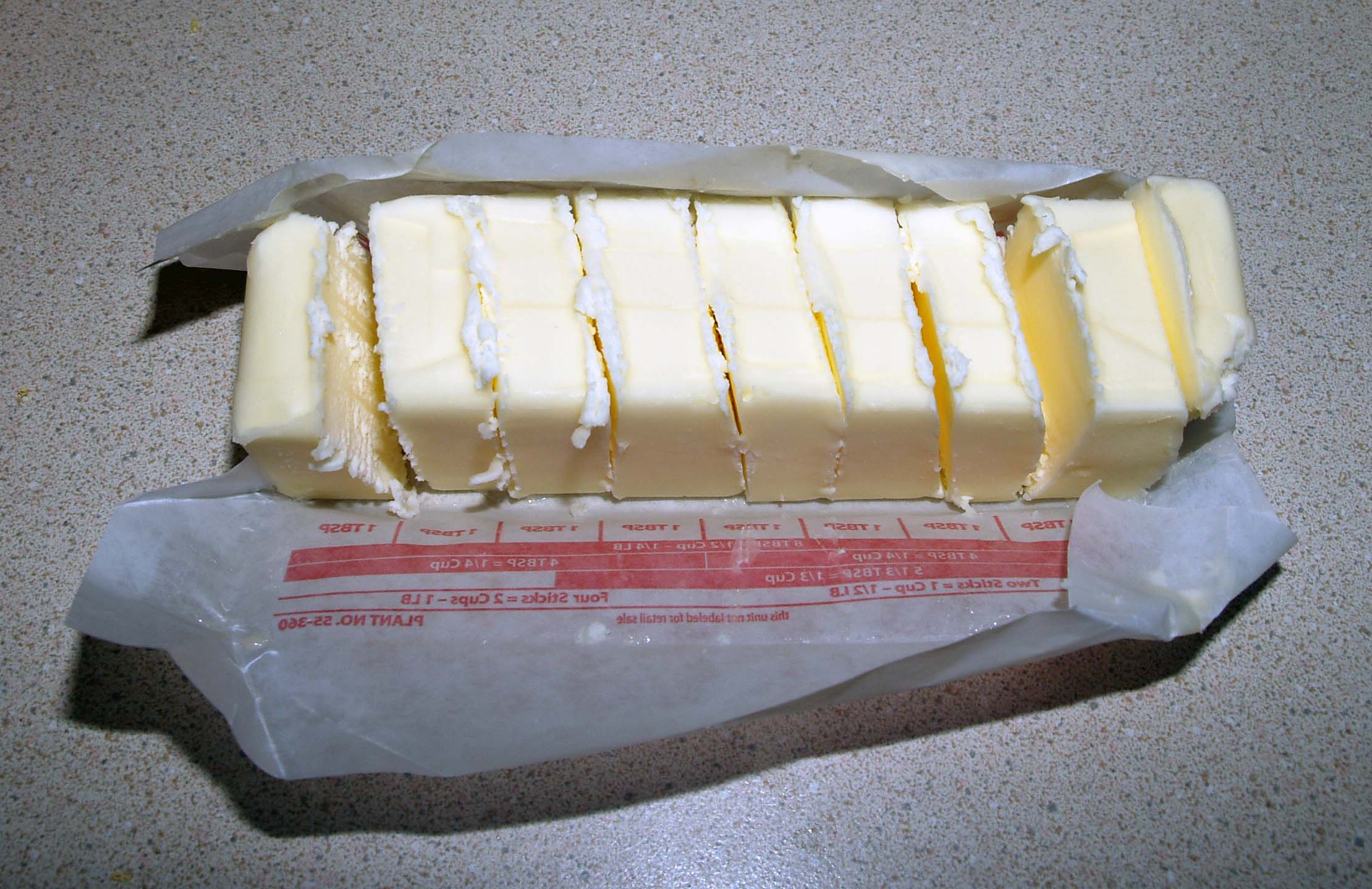 - 1 stick butter, cut into pats (1 Tbsp. or less each)
