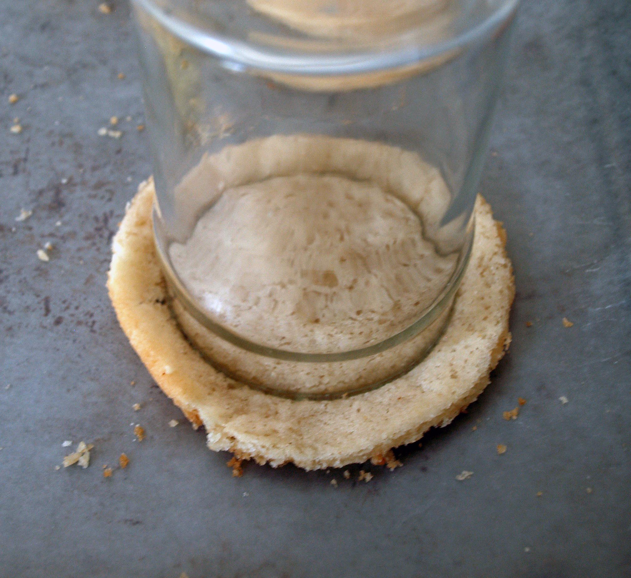 As you can see above, my slices were too thick and I placed them too close together. Fortunately, you can fix this! Using a round cookie cutter or small glass, cut circles in the center of each cookie. Discard (or, who are we kidding, eat) the edges.