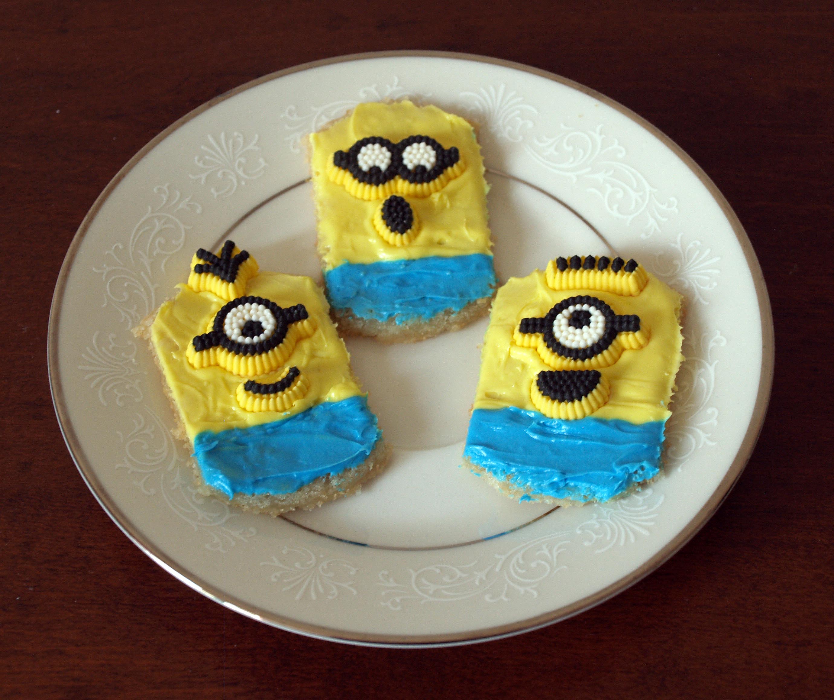 - Minion face decorations (alternatively, you could use sugar eyes and black licorice, it would just take a little more work)