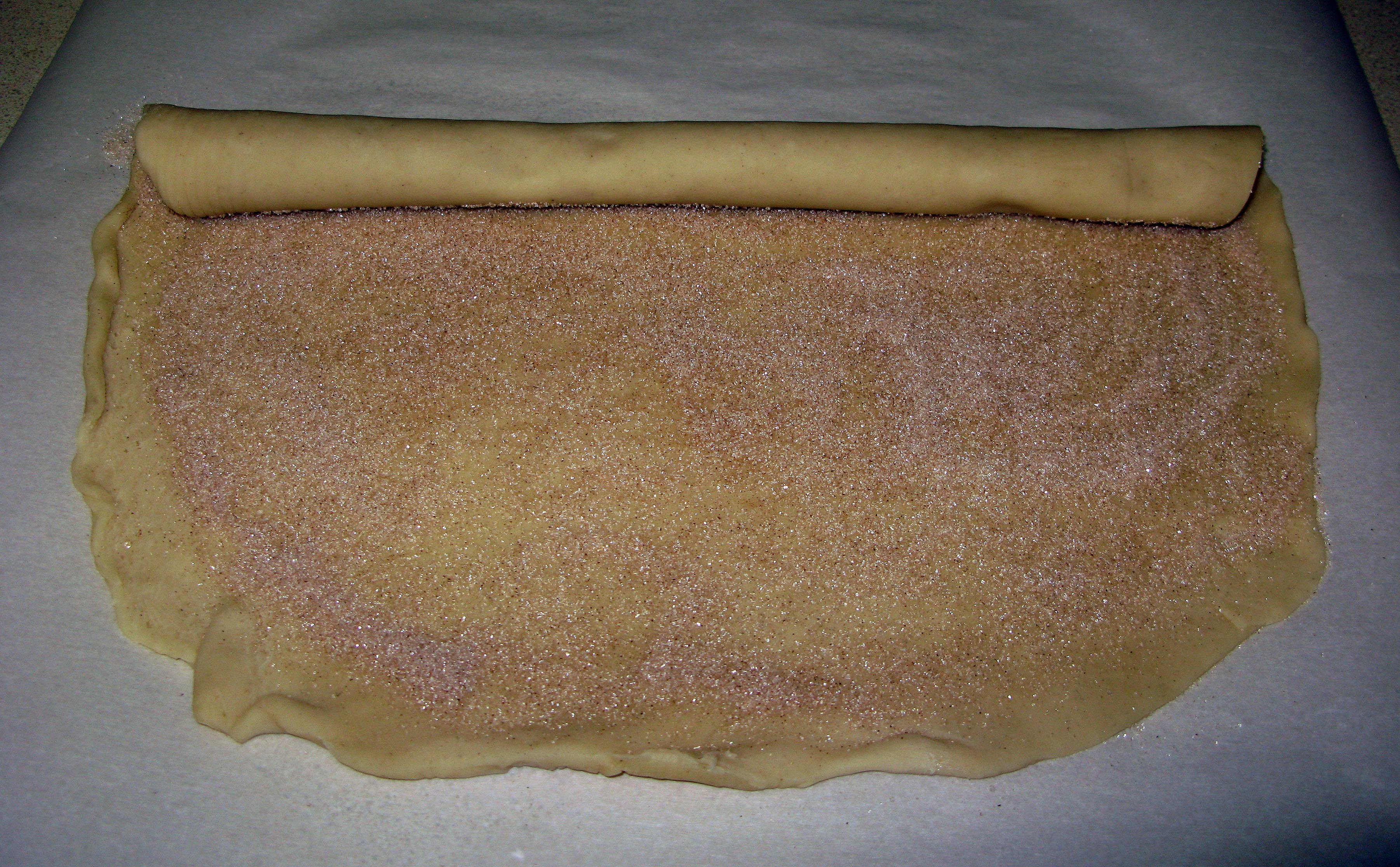 When you’re satisfied with the shape of your crust, sprinkle the cinnamon sugar evenly on top.