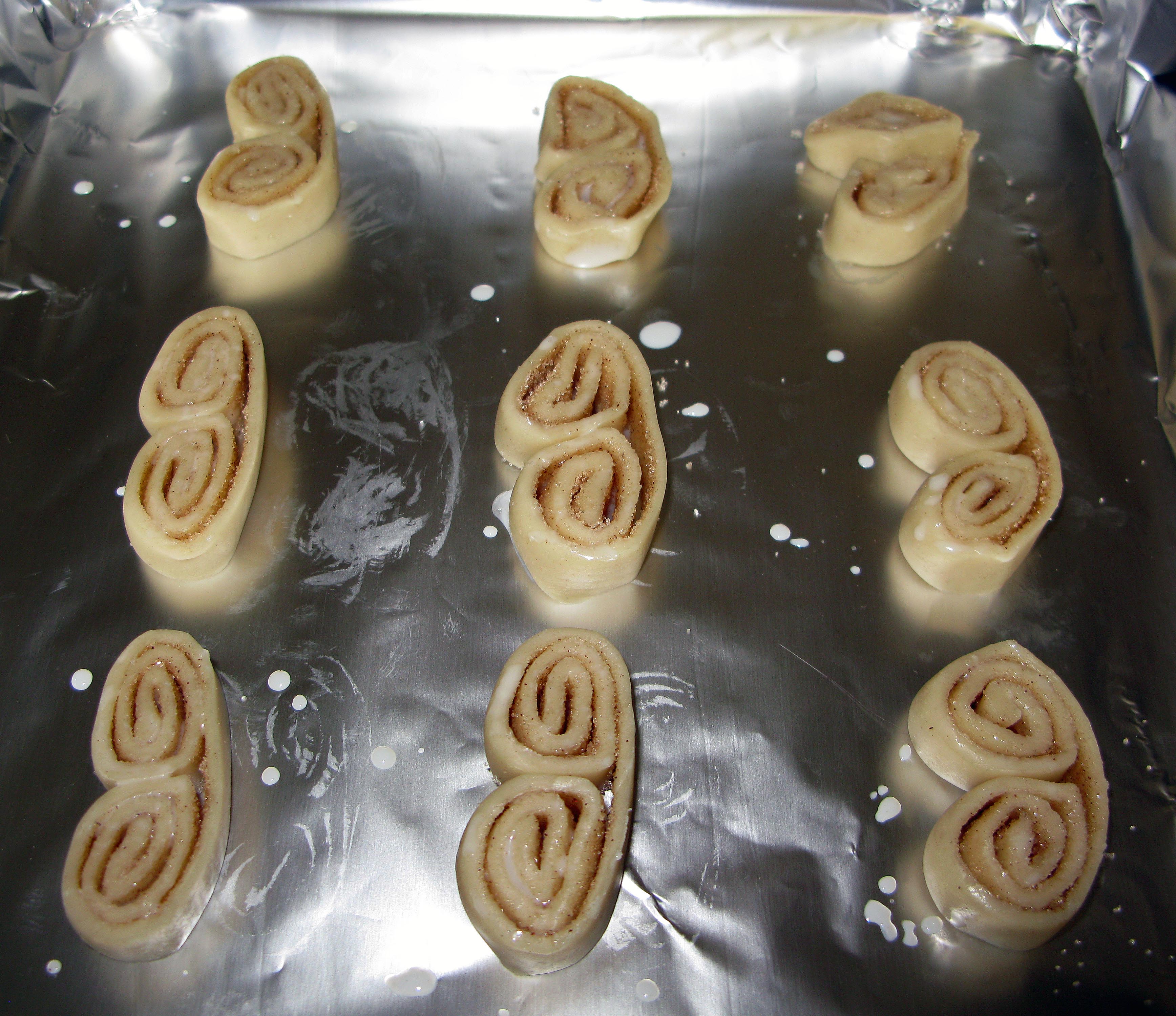 Using a sharp knife, cut the roll into ¼” slices. Tighten up the rolls if necessary, then transfer the slices to the cookie sheets.