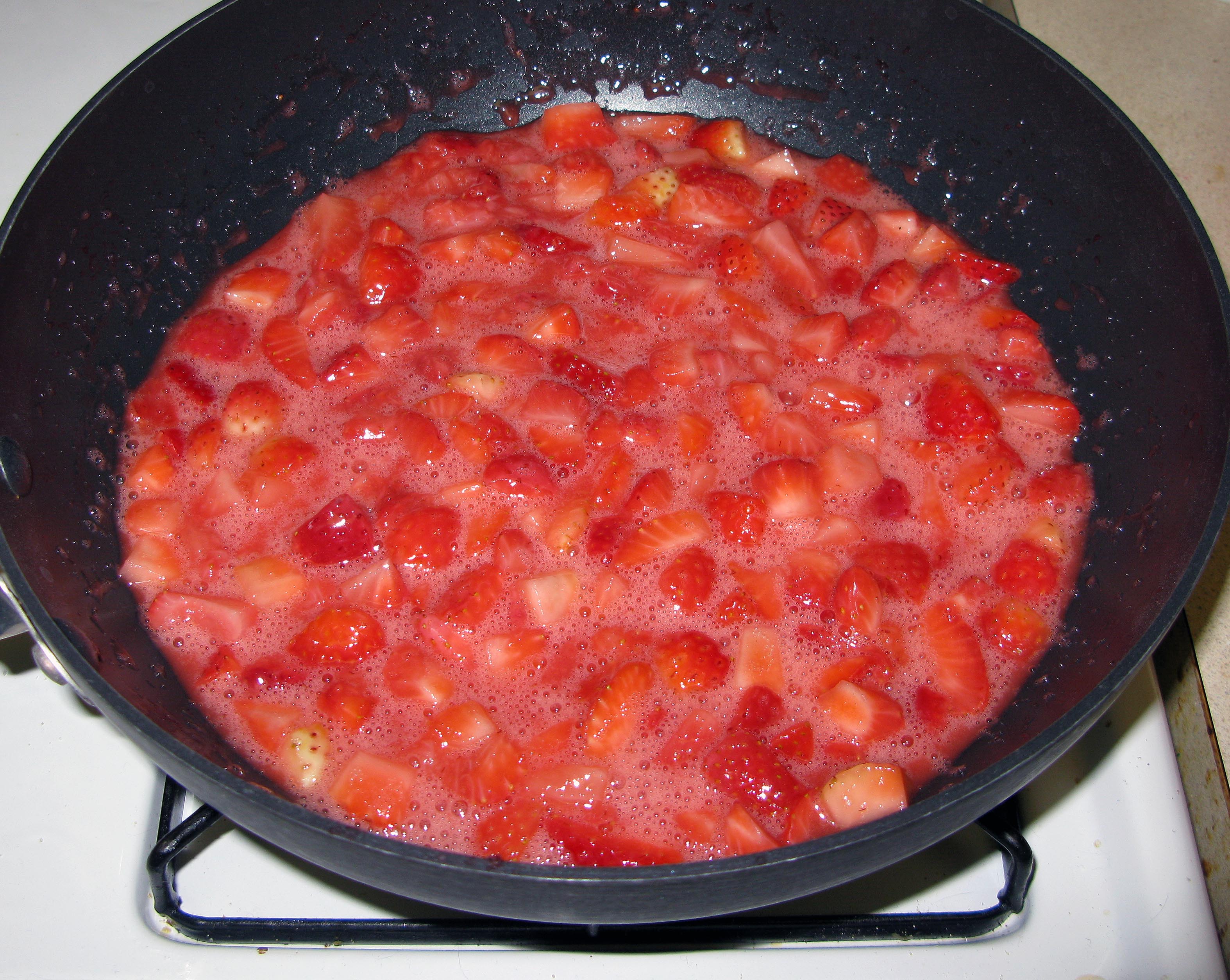 Heat the strawberries on medium-low until they begin to break down, as mentioned, and released most of their juice.