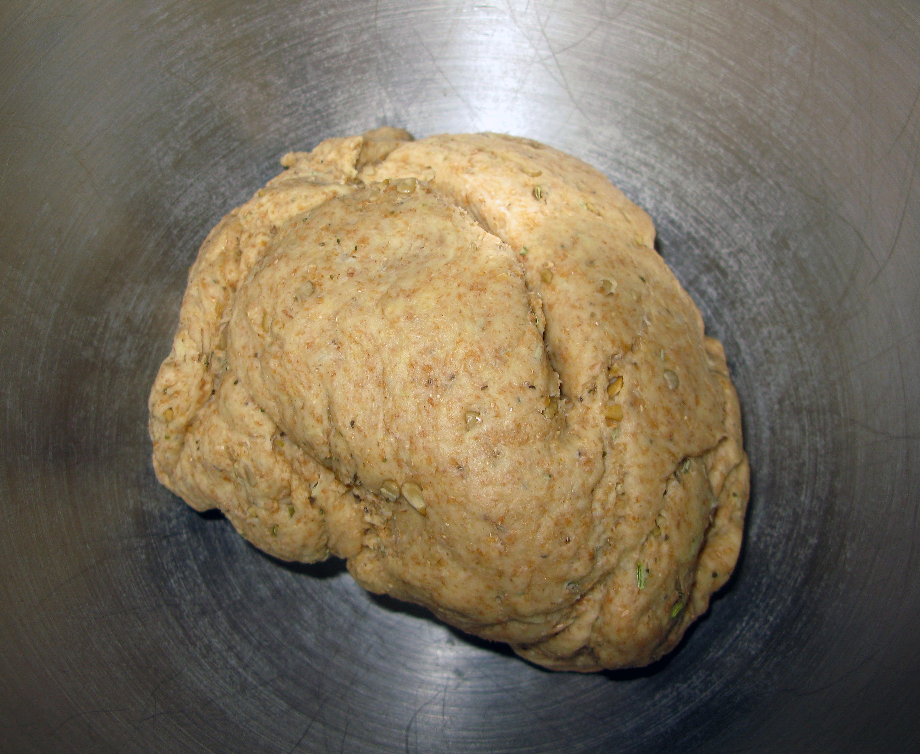 Put dough ball in a large, well-greased bowl and turn once to coat (I just grease the stand mixer bowl after the kneading is done to save on dishes I have to clean). Cover the bowl with a kitchen towel and leave the dough to rise in a warm place until it has approximately doubled in size, about 1 hour (my kitchen was a little cold, so it took me an hour and 45 minutes).