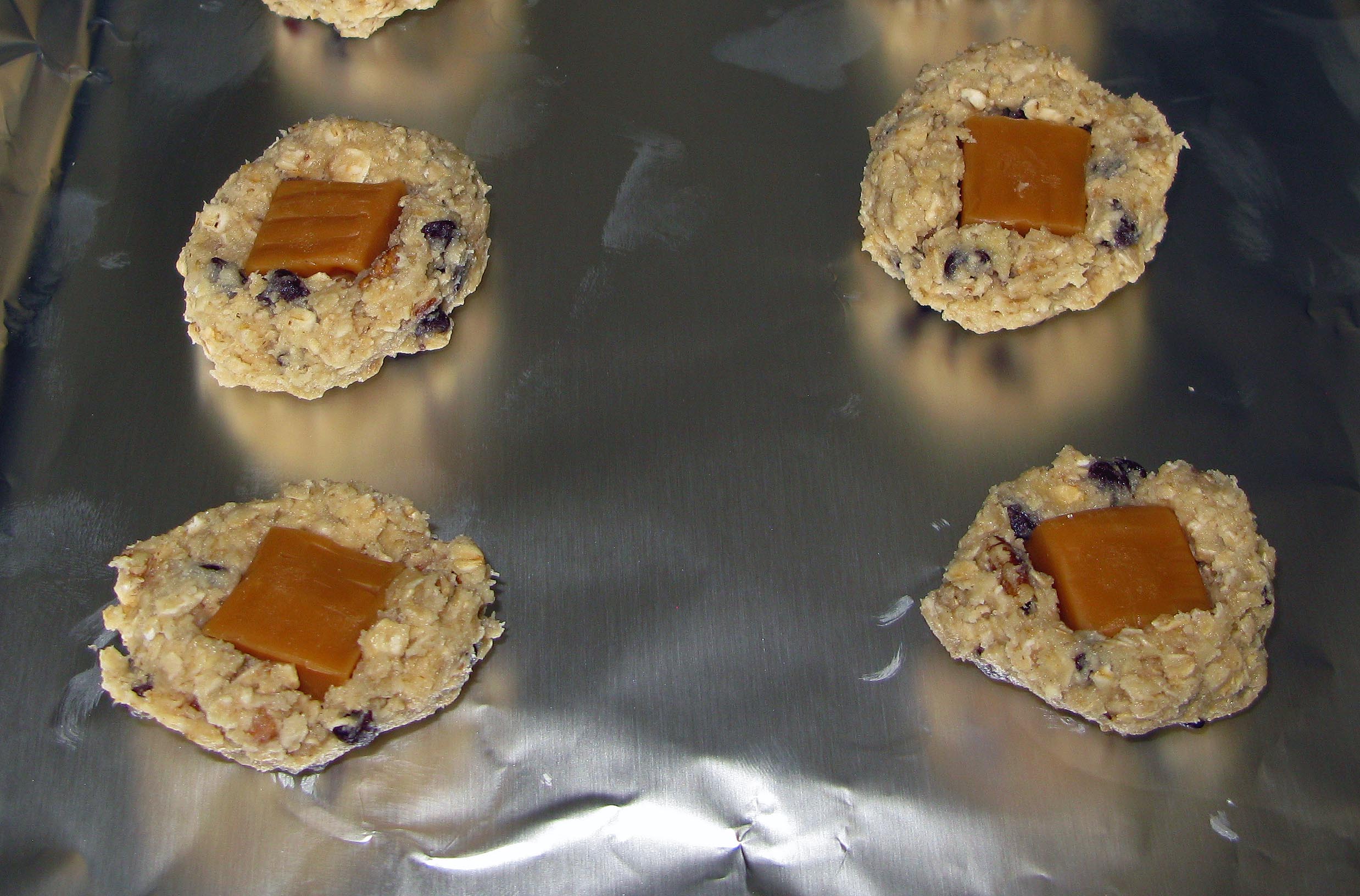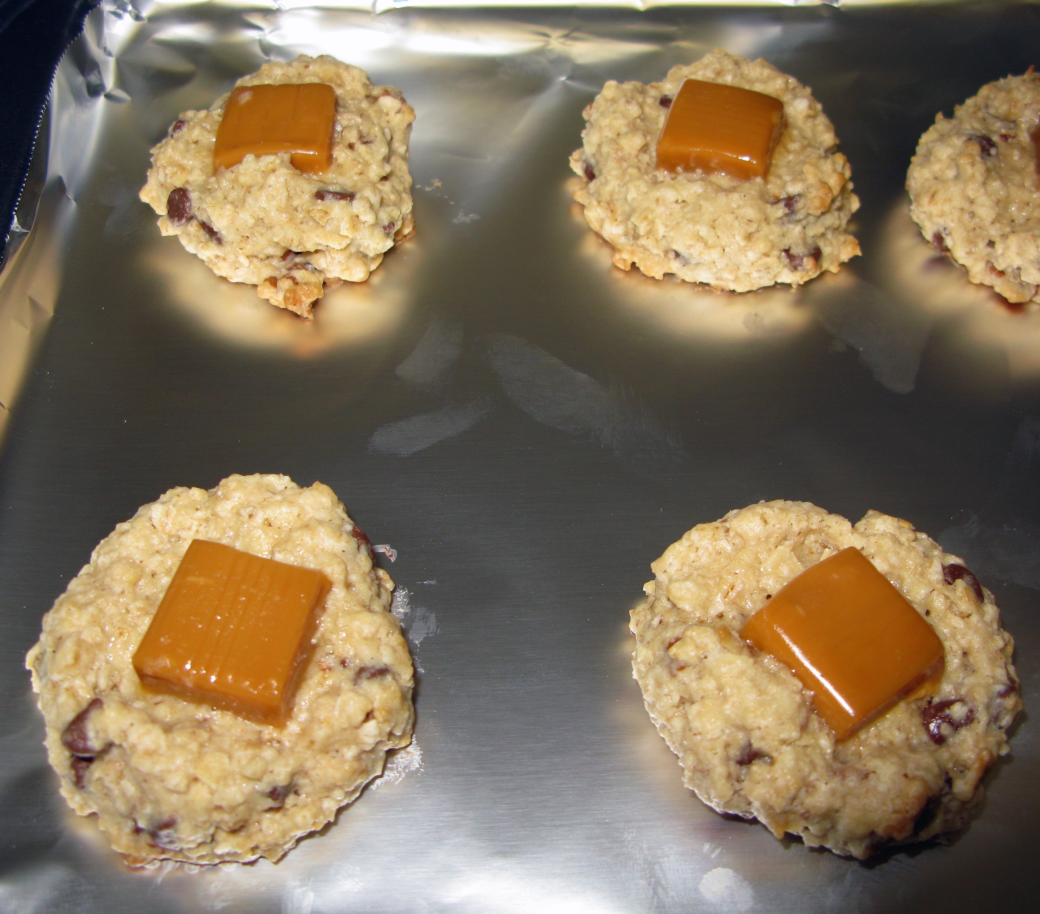 Bake the cookies for 8-10 minutes, or until the bottoms start to brown and the caramels start to melt.