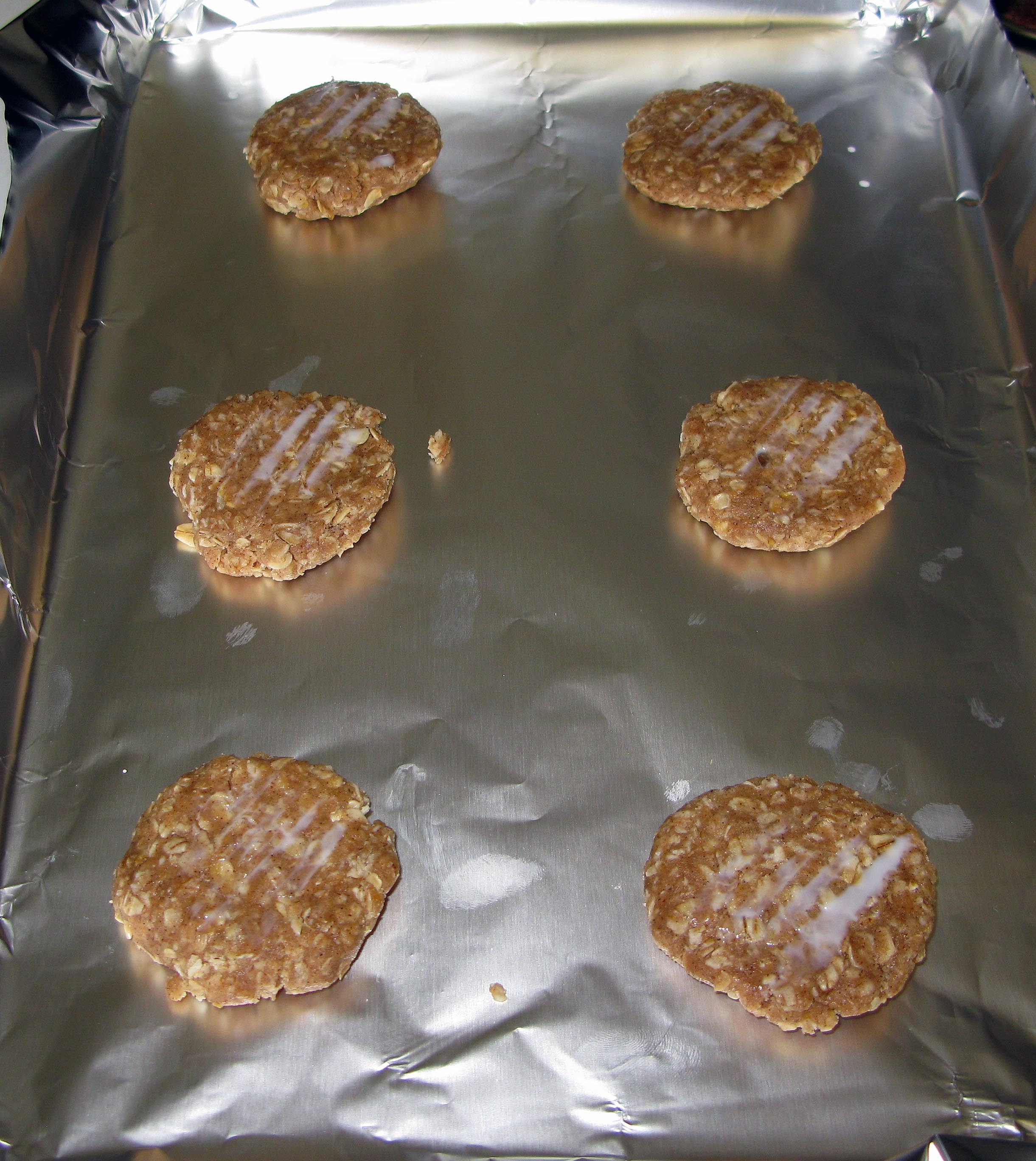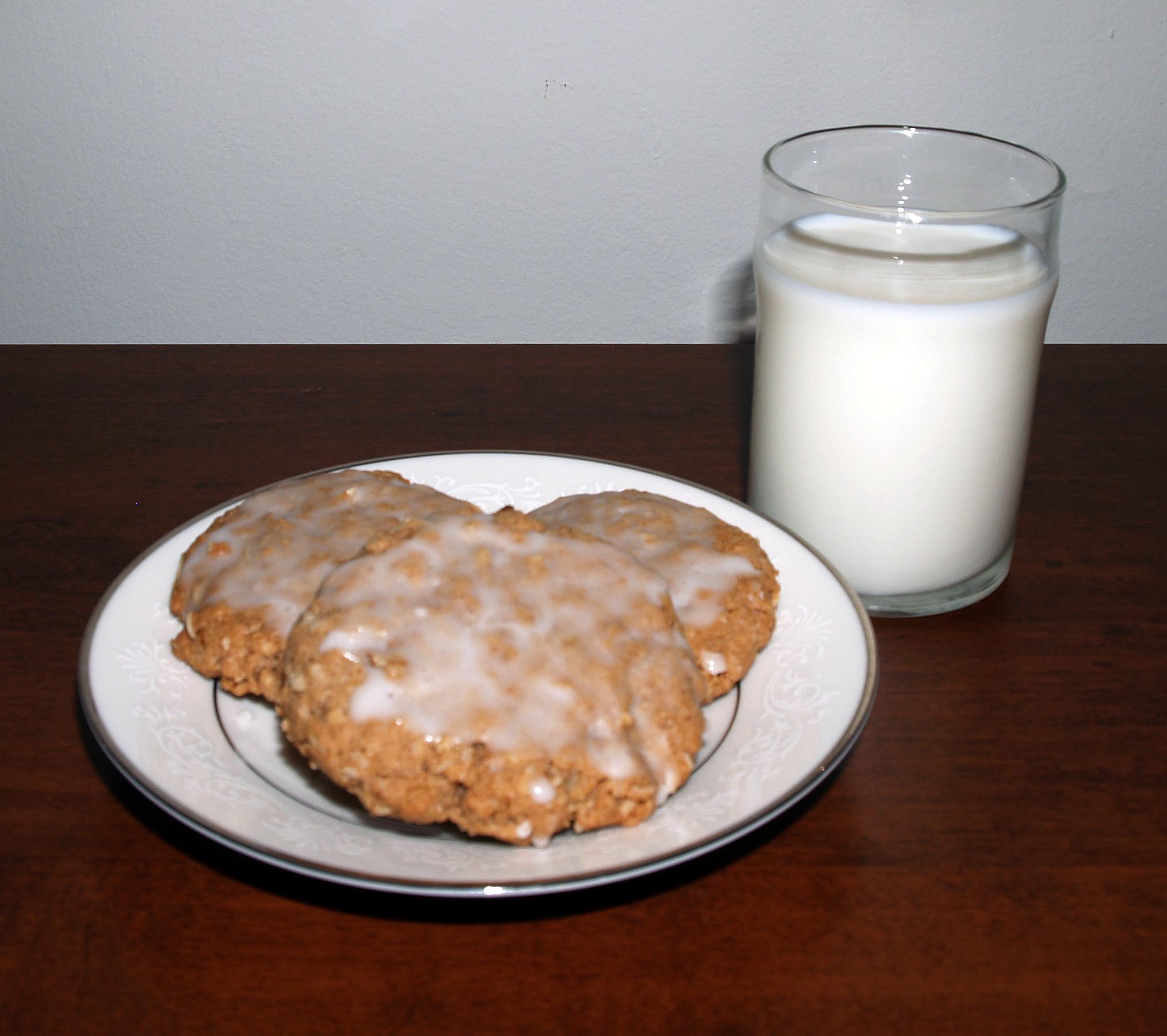 When I was preparing for my trip, I asked Josh if there was anything special he wanted me to get from the grocery store when I stocked up. The only thing he asked for was iced oatmeal cookies. Sadly, I couldn’t find them in Target, so I had to disappoint him. To make it right, I decided that I would make them for my next bakeventure. I started with this recipe for the cookies and made a pourable glaze to finish it off.