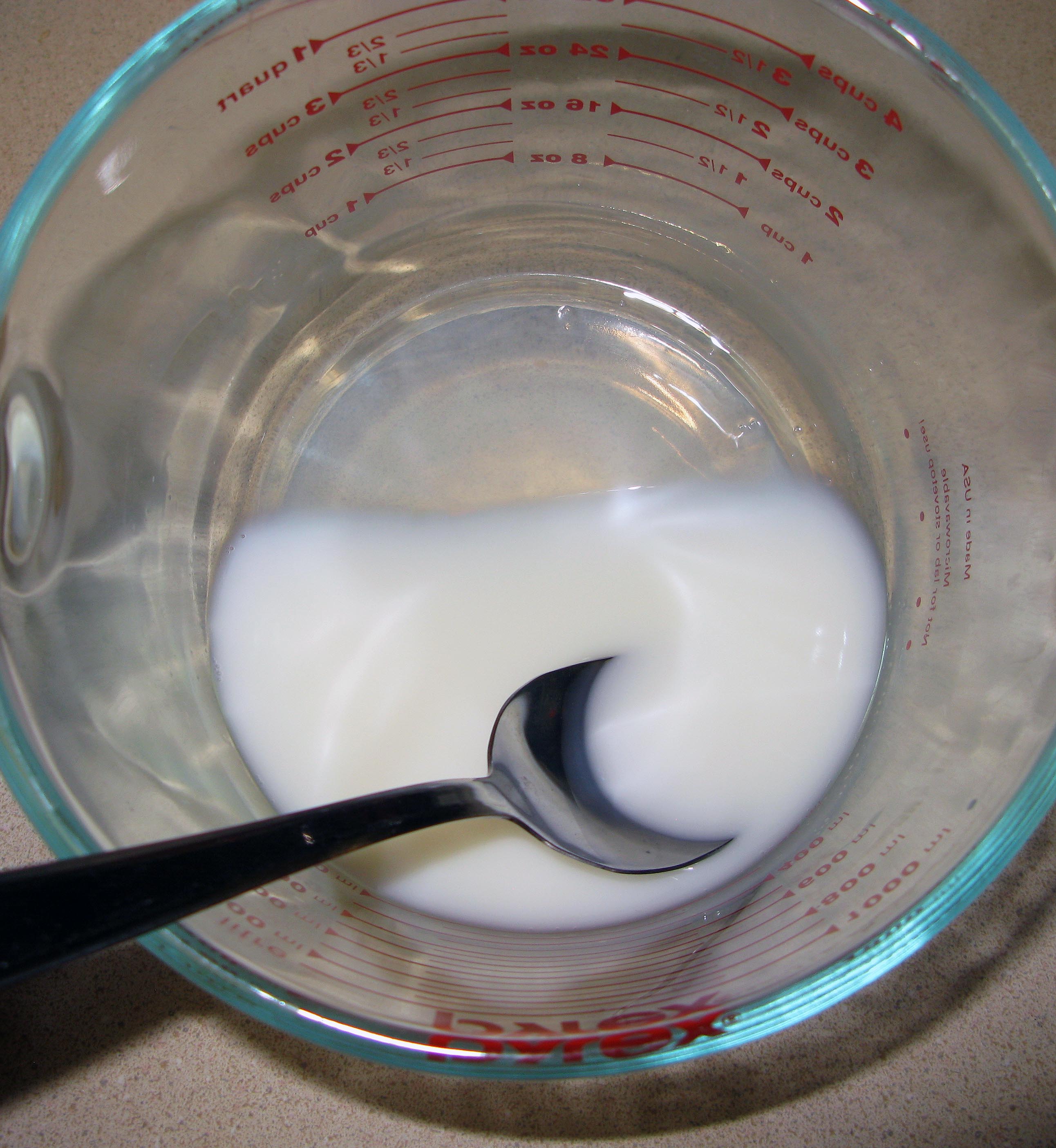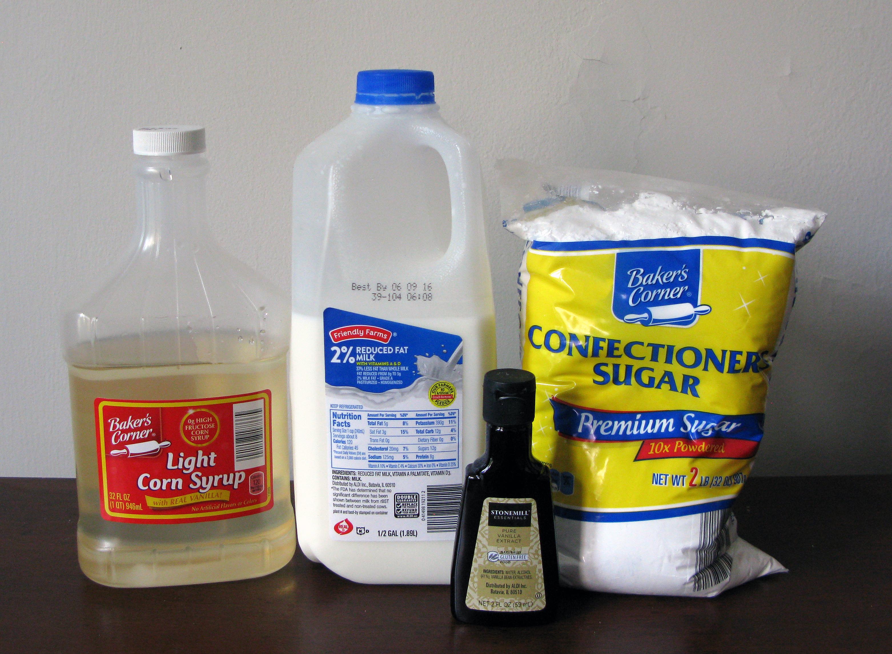 When the cookies have cooled, it’s time to prepare the icing. I like to do this in a glass, 4-cup measuring cup because I can microwave the milk in it first (about 30 seconds was all it needed), and because the pour spout makes it easy to ice the cookies. Whatever vessel you choose, whisk together the warm milk, corn syrup, and vanilla extract until they are fully-combined. Be sure to swirl the mixture in the bowl so that you can see that all of the corn syrup is getting mixed in and not just sitting on the bottom.