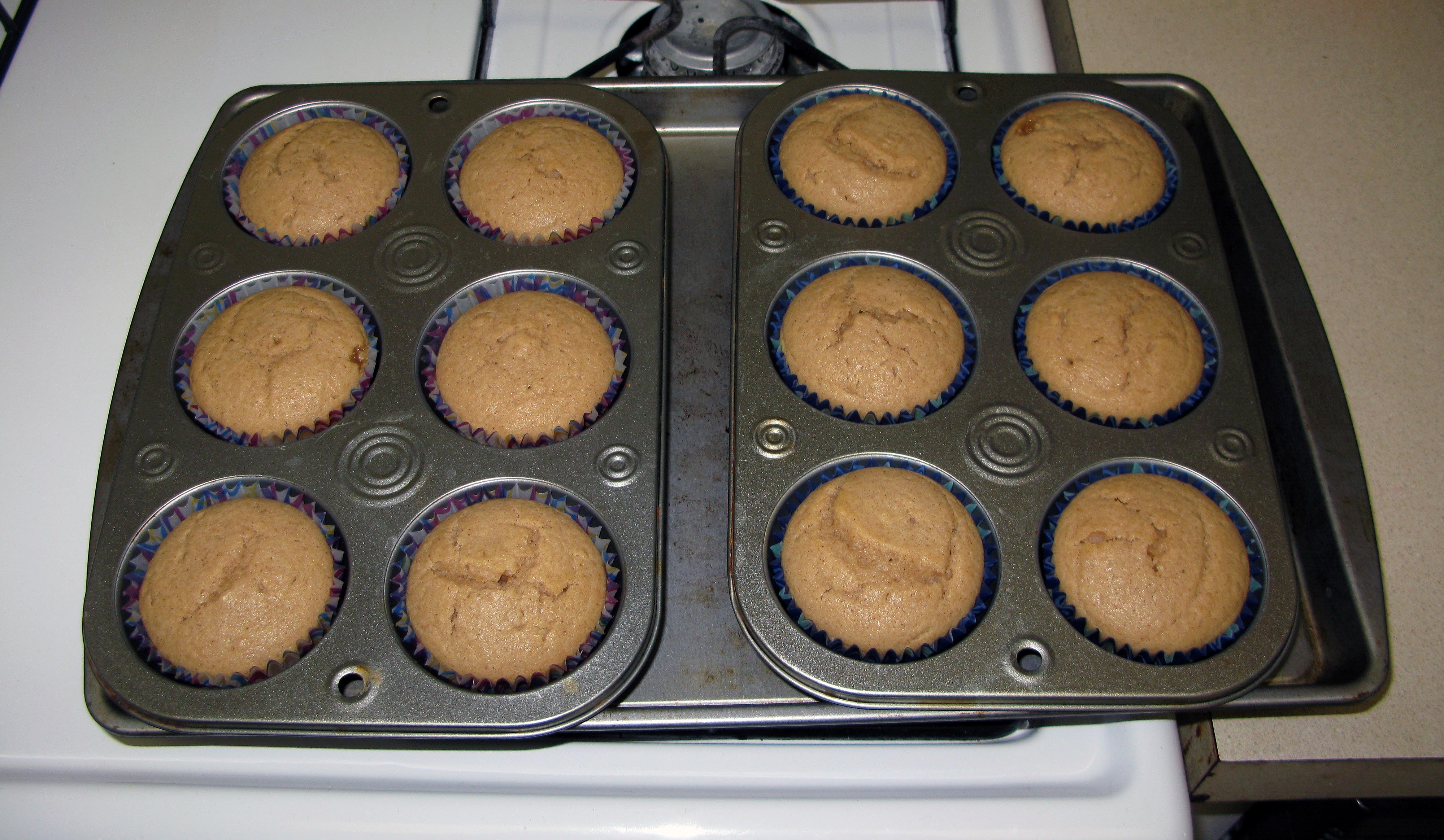 Fill the cupcake wrappers approximately ¾ full with batter (it should divide roughly evenly between the 12). I used the Wilton Perfect-Fill Batter Tip for this, and it made things really easy.