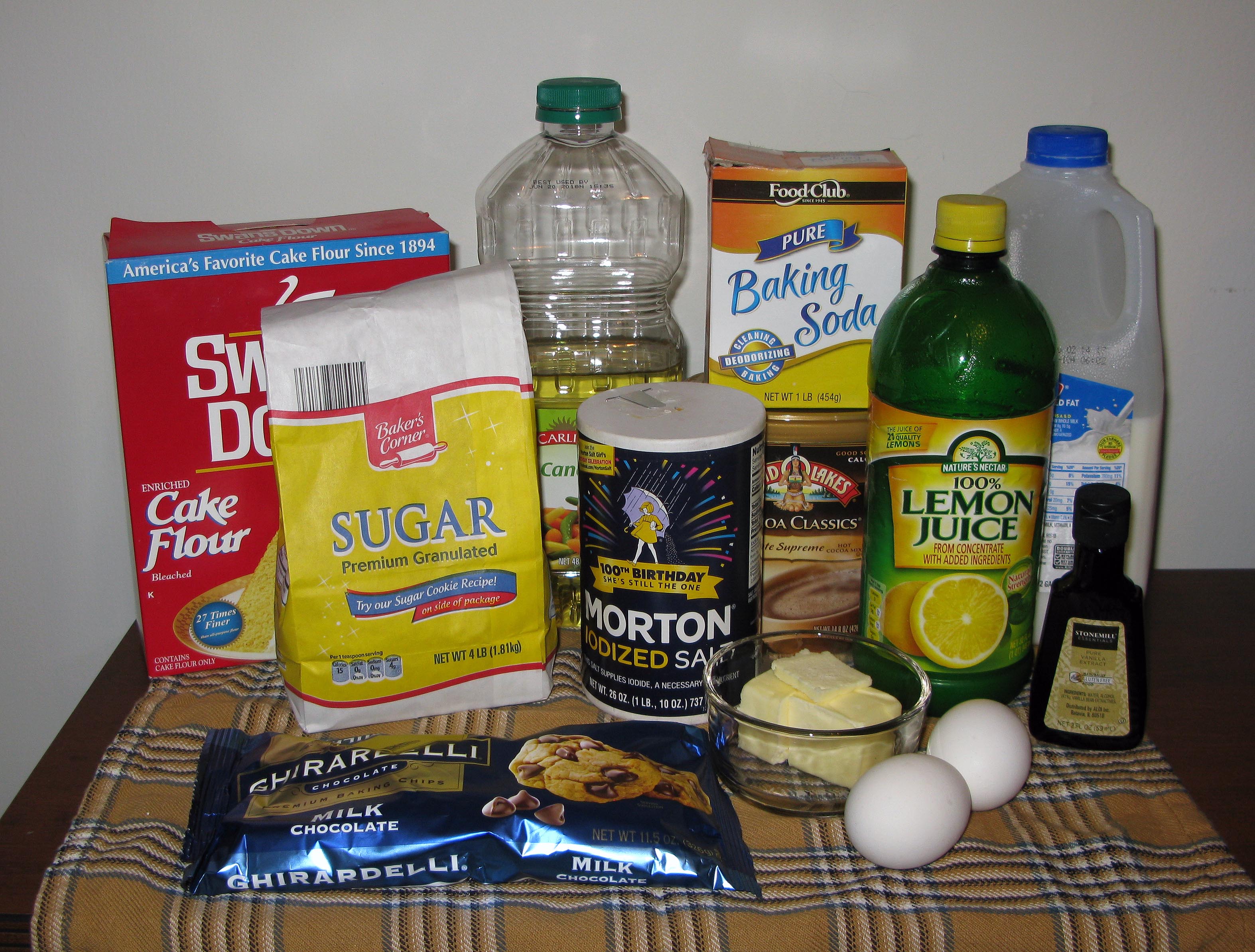 - 1 cup buttermilk, at room temperature (regular milk and lemon juice are pictured above because I substituted, as mentioned in the introduction)