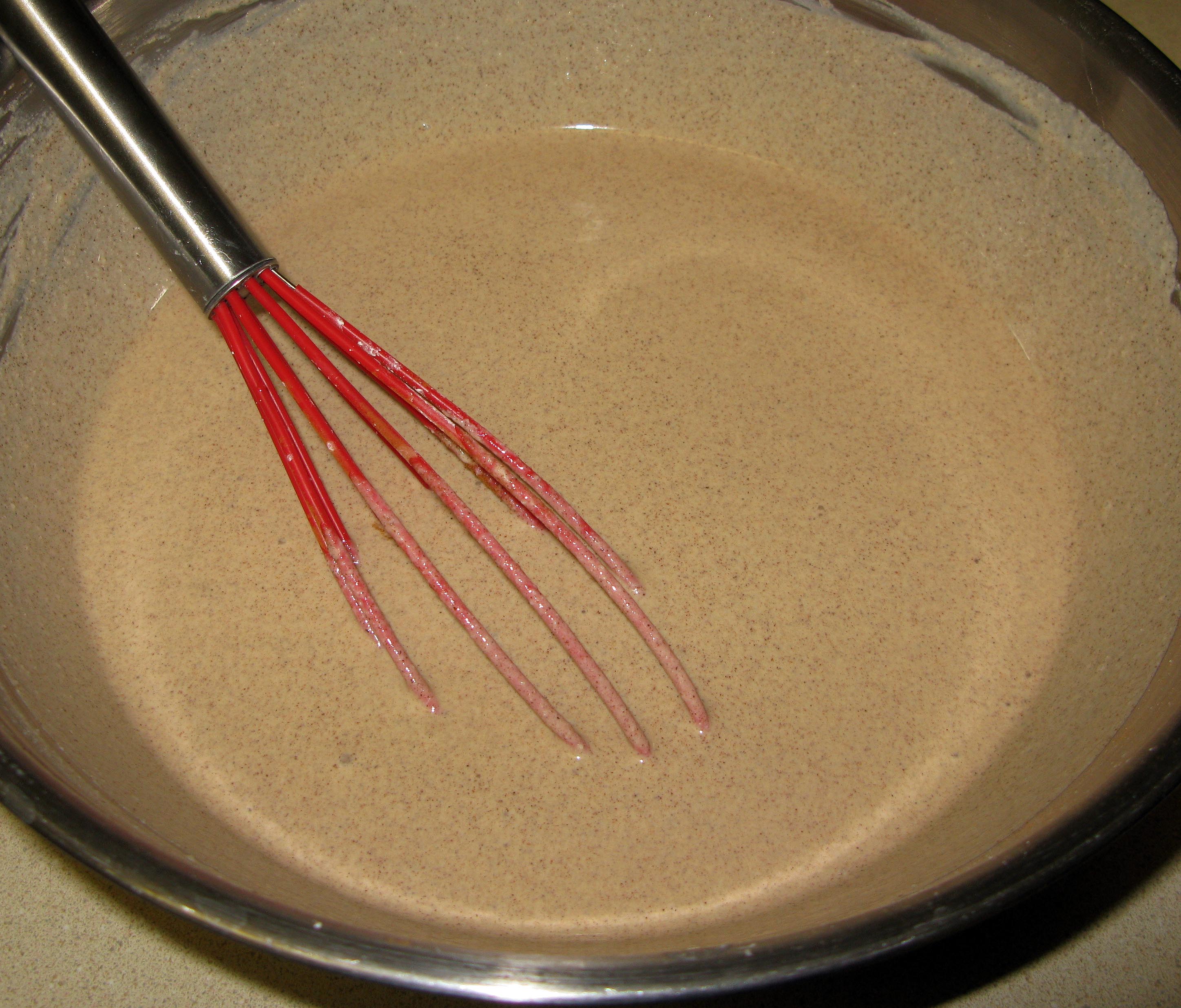 Transfer the contents of the food processor to a large mixing bowl and whisk in the eggs and rum until just combined (there may be some yellow streaks).