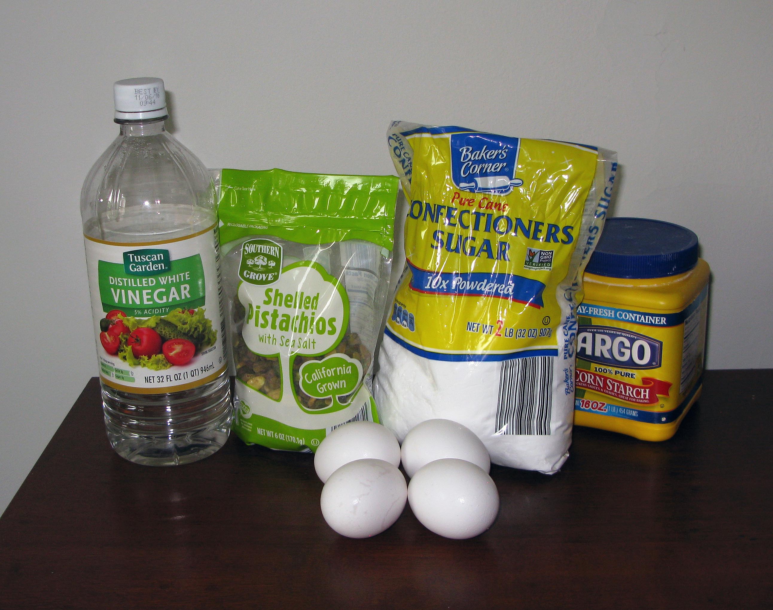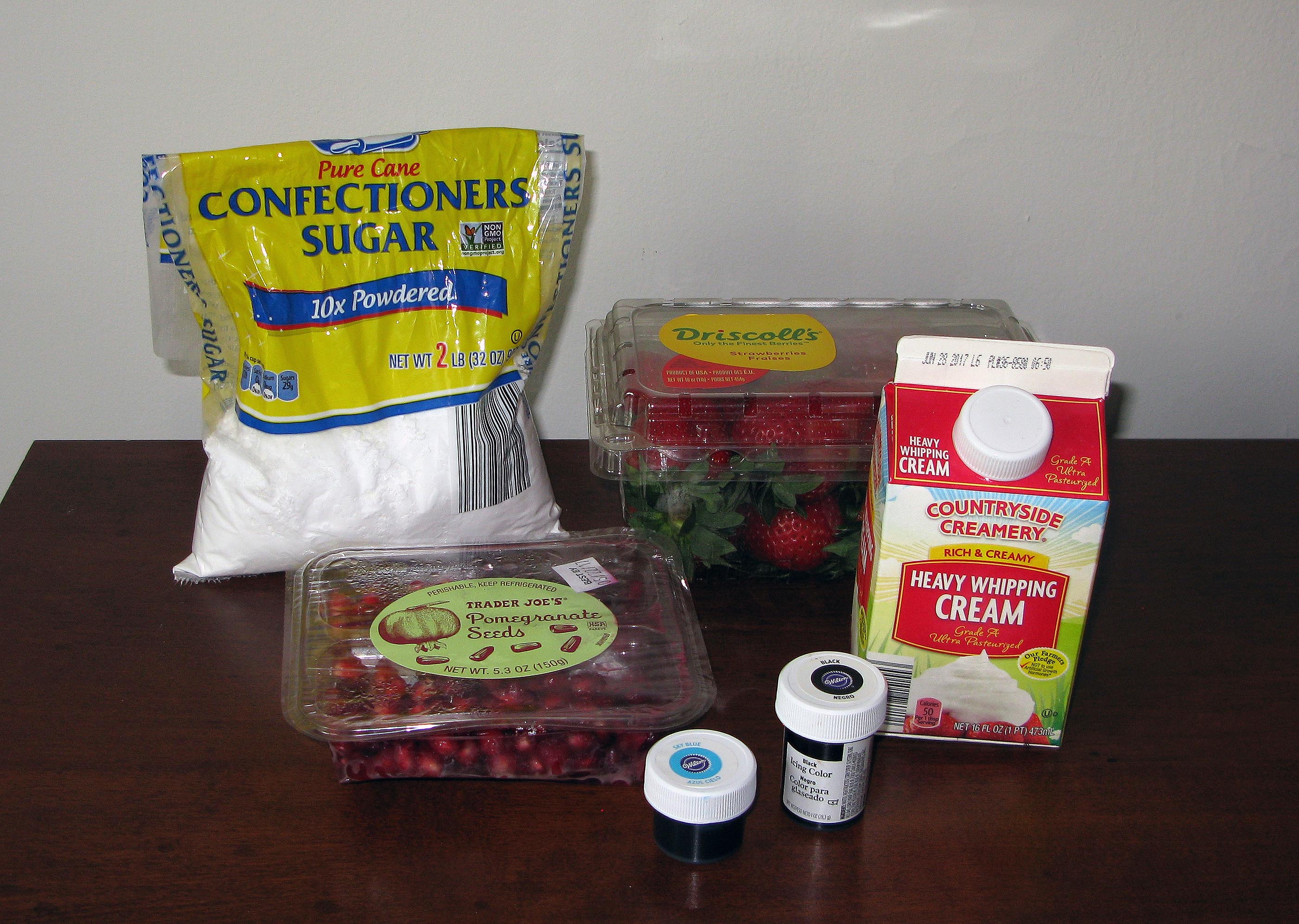 Symbolism and nerdiness aside, this dessert is absolutely delicious. It tastes like summer. I based the recipe on Mary Berry’s strawberry pavlova recipe (found in this cookbook), making the alterations discussed above. The strawberries do taste quite good, but the pomegranate and pistachio flavor combination works exceptionally well. I considered adding some pulverized, dried strawberry powder to the meringue base, but I’m glad I didn’t because that might have been one variable too many.