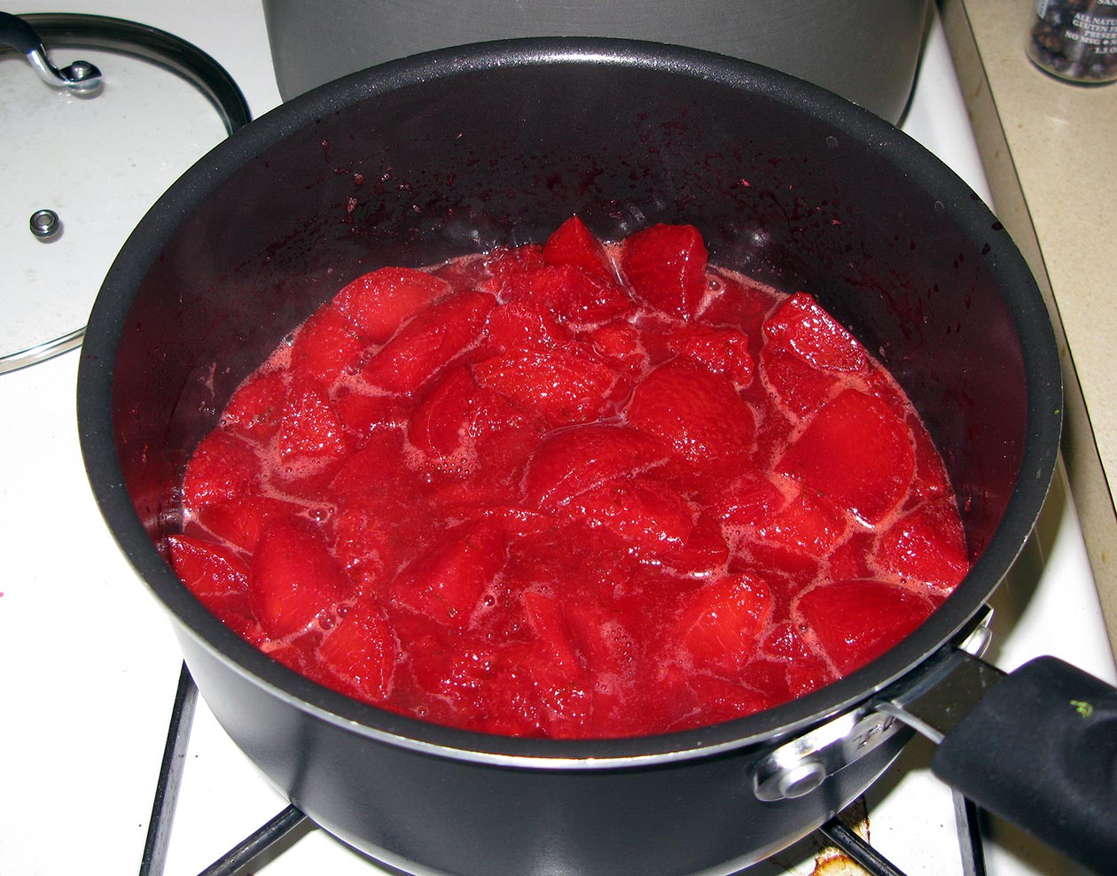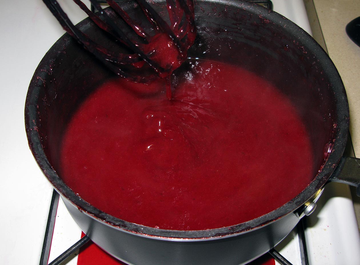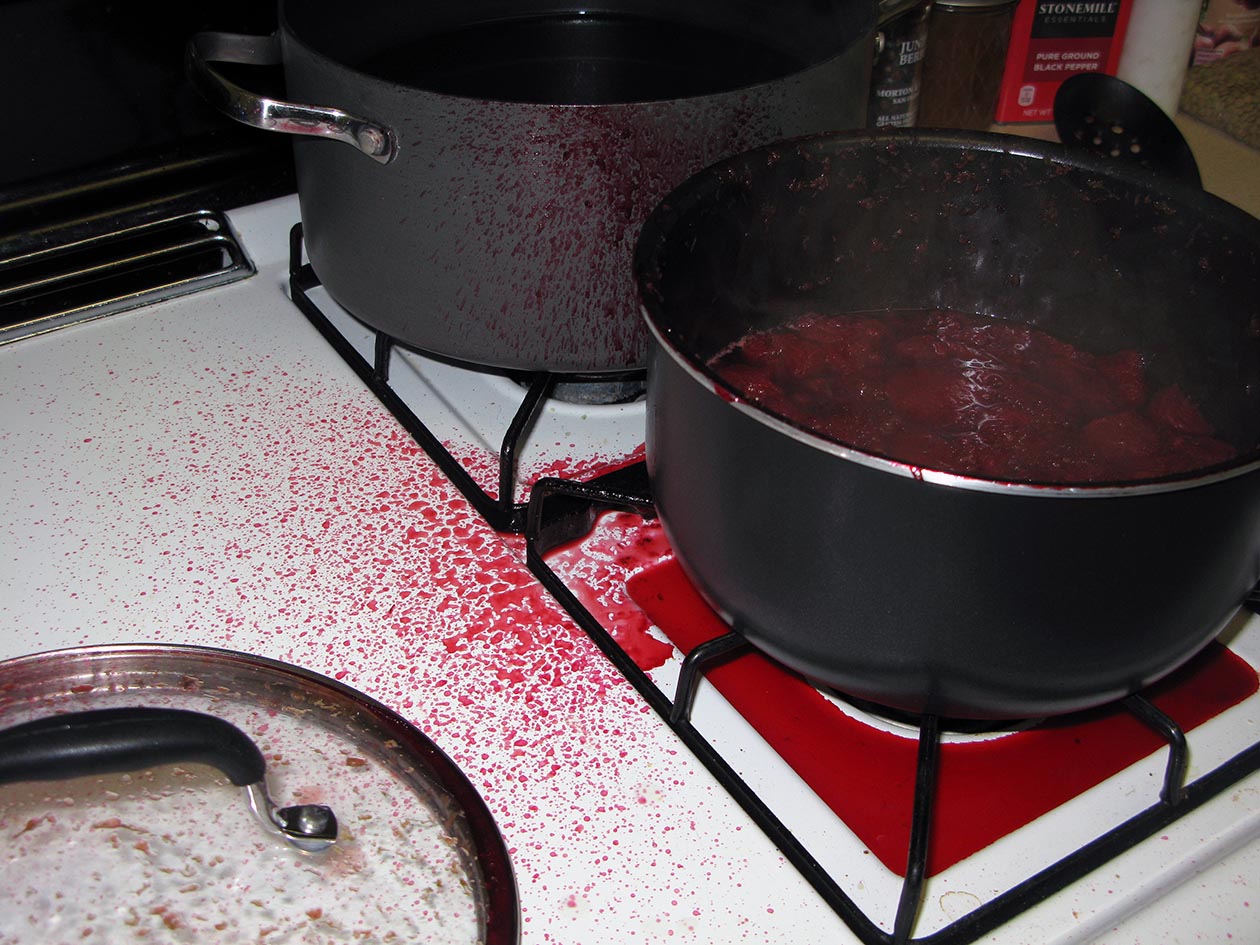 Reduce the heat to low and cover the pot. Cook until the apriums are very mushy. Be sure to stir it from time to time as it simmers, or else you may end up with a horror scene like this: