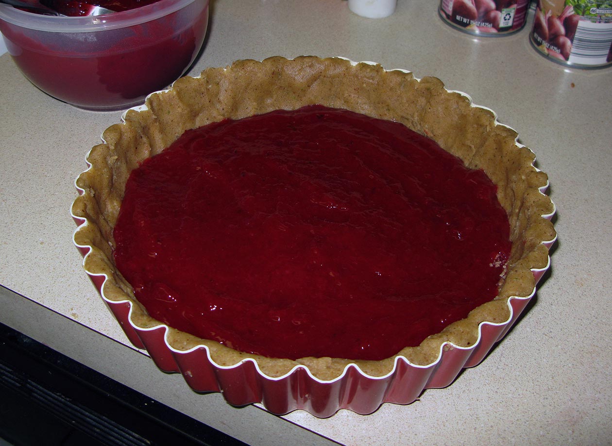 Spread a ¼” thick layer of aprium filling evenly across the crust. This will take about 1-1½ cups of filling depending on the size of your tart pan (I overfilled mine a bit, but I have no regrets).