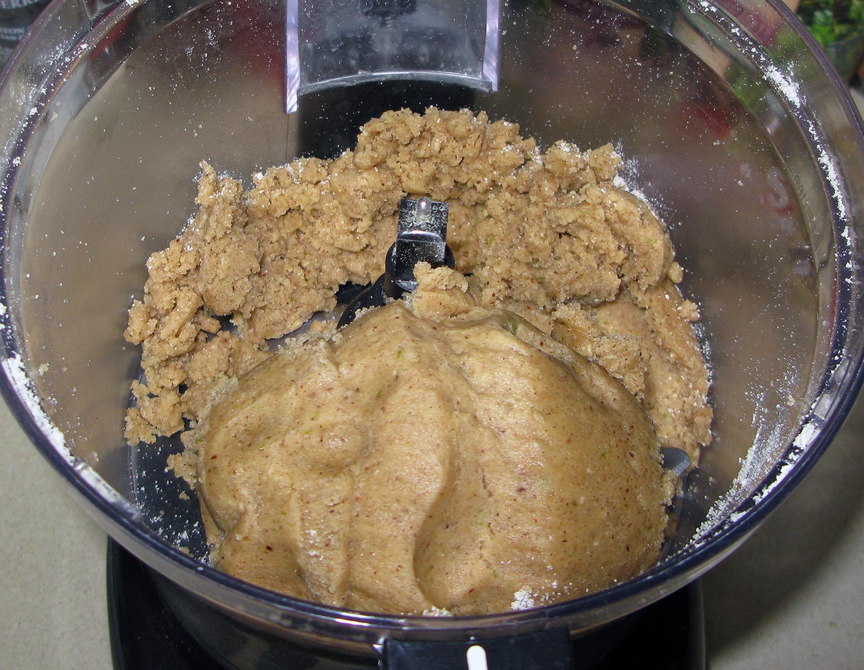 Add the butter, egg yolks, and lime zest. Process until a smooth dough ball forms.