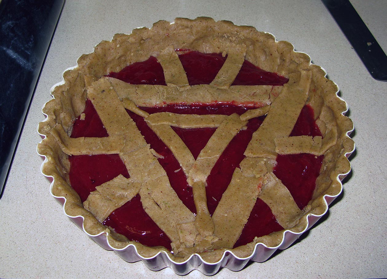 I used this delicious jam to make my own version of a linzertorte. Linzertorte is an Austrian tart that is usually filled with raspberry or redcurrant jam. [Not to be confused with linzer hearts/sables, which I’ve always known as linzer tarts. They both use raspberry jam, but what I’ve always called a linzer tart is a heart-shaped sandwich cookie covered with powdered sugar and filled with jam with a little heart cut in the middle of the top cookie to show the filling. Just in case you had the same misconception.] To explain why I had to scour every grocery store within a 10 mile radius week after week for such a specific hybrid fruit, we need to go back to this bakeventure’s source material.