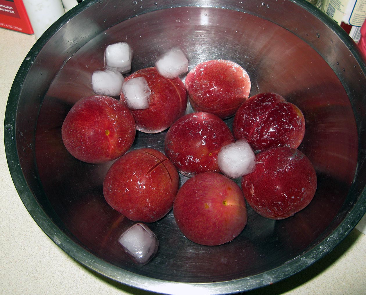 Remove them from the water with a slotted spoon or strainer and immediately drop them into the ice water. Repeat the process until all of your apriums have been boiled.